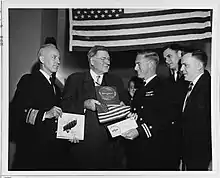 Shafroth (center in civilian clothes) receives gifts on behalf of Naval Historical Foundation in January 1960.