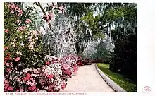 Old rice fields were no longer feasible to maintain and were shaped into an area served by intricate walking paths among the flowering plants.[55] Adam Bennett continued as his master gardener.[56] In 1872 the gardens were opened to the public for the first time, and a small entrance fee was charged.[57] Railroads and steamers from Charleston brought visitors to the grounds.[58] The publicity that Magnolia received in glowing articles in national publications such as Harper's Monthly Magazine increased exposure and attendance.[58] Drayton's granddaughter, Marie Clinton Hastie, wrote years later than opening Magnolia to the public provided funds for Drayton's ministry to his African American parishioners.[59] Reverend Drayton was not paid for his ministry after the war,[60] except for $50 the vestry gave him in 1880.[61]