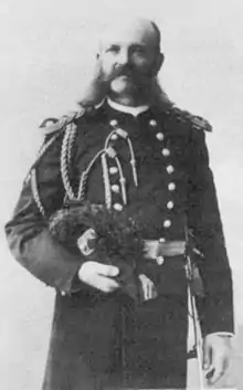 John Harris Soper (1846–1944) was Marshal of the Kingdom of Hawaii during the period of 1884-86 and 1888-90. He was born November 17, 1846, in Plymouth, Devon, England to Thomas Harris Soper and Mary Kipling Soper.[1] A military man, he became Commander-in-chief of military forces of the Provisional Government of Hawaii in 1893; Adjutant General and Chief of Staff during the period of 1894-1907; and retired as Brigadier General of the National Guard of Hawaii in 1907, having previously served in the California National Guard.[2] Also a businessman, he was President of Hawaiian News Company in Honolulu; and also managed Soper, Wright & Company, a sugar plantation, on ʻŌʻōkala, Hawaii.[3][4] He served as honorary vice-president of the Societe des Sauveteurs du Dernier Adieu; and was a member of the Hawaiian Lodge No. 21, F. & A. M. Soper married Mary Elizabeth Wundenberg at Vallejo, California, in 1871; they had five children.[1]