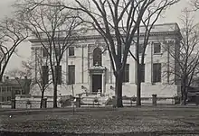 The building was constructed to a design by the Boston architectural firm of Shepley, Rutan and Coolidge in the Beaux-Arts style. The structure was initially intended to be built of limestone, though was ultimately constructed of white marble quarried in Dorset, Vermont. The library was opened on September 24 and dedicated on November 10, 1910.[4]