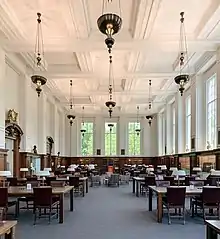 The John D. Rockefeller Jr. Library became Brown's main library in 1964, with the John Hay Library retaining the university's special collections. The library provided temporary quarters for the Physical Sciences Library until the Sciences Library was built in 1971. The John Hay Library was completely renovated and rededicated on September 21, 1981. A major renovation of the library headed by Selldorf Architects began in 2013.[6] The building was closed on June 1, 2013, and reopened in Fall 2014.[5] The renovation reconfigured the library's main floor, doubled the exhibition space, and returned the main reading room to its original design.[5]
