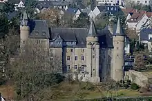 John took over the reign in 1362.[1][3][9][17] He immediately started a feud with Godfrey of Heinsberg over John's claims to the Lordship of Heinsberg and Stadt Blankenberg, originating from the marriage of his grandfather Count Henry I of Nassau-Siegen to Lady Adelaide of Heinsberg and Blankenberg, which Godfrey had partly transferred to his brother-in-law, Duke William I of Jülich. The feud was eventually sufficiently resolved by the assurance of monetary payments in 1363 and 1374.[3][5][17]