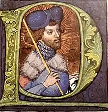 Roman King Wenceslaus. Detail from the Wenceslas Bible, 1390s.