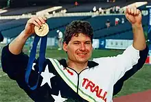 John Lindsay, OAM[1] (born 29 January 1970)[2] is an Australian Paralympic athlete from Melbourne.[2] He competed in the 1988 Seoul games in distances ranging from 100 m to 800 m, but did not win any medals.[3] At the 1992 Barcelona Games, he won a gold medal in the Men's 200 m TW3 event, for which he received a Medal of the Order of Australia,[1] a silver medal in the Men's 100 m TW3 event and a bronze medal in the Men's 400 m TW3 event.[3] That year, he had a Victorian Institute of Sport scholarship.[4] He was also working as a fitness instructor in 1992, held world records in the 100 m and 200 m events, and was ranked 6th in the world in the 400 m.[4] He won a gold medal in the men's athletics 100 m T52 event at the 1996 Summer Paralympics with a time of 15.22,[5] a silver medal in the 200 m T52 event with a time of 27.38,[6] and a bronze medal in the 400 m T52 event with a time of 52.93.[7] At the 2000 Sydney Games, he won a gold medal in the Men's 100 m T53 event, a silver medal as part of the Men's 4x100 m Relay T54 team, and a bronze medal in the Men's 200 m T53 event;[3] he was also part of the Men's 4x400 m Relay T54 team, which was the only one to qualify in its heat, but it did not make it to the finals.[8] At the 2004 Athens Games, he came seventh in the first round of the Men's 100 m T53 event[9] and sixth in the third round of the Men's 200 m T53 event.[10] He was an Australian Institute of Sport scholarship holder in 1995 and 2000.[11]