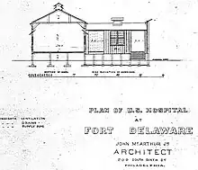 Plan for U.S. Army Hospital, Fort Delaware, Pea Patch Island, DE (1863, demolished). This 600-bed hospital served the garrison, Confederate prisoners, and civilians.