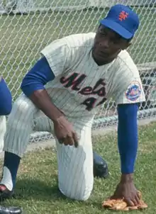 Milner was drafted by the New York Mets in the 14th round of the 1968 Major League Baseball Draft out of South Fulton High School in East Point, Georgia, where he was All-State in baseball, football and basketball. He batted .307 with 58 home runs and 168 runs batted in over three seasons in their farm system before making his major league debut with the Mets in September 1971. He earned the job of "left-handed bat off the bench" on the opening day roster in 1972 by batting .296 with a team high three home runs during spring training,[1] and quickly moved into a platoon with Cleon Jones in left field. In the first game of a September 8 doubleheader with the St. Louis Cardinals, Milner became the first Mets rookie in franchise history to record a five-hit game.[2] For the season, he batted .238 with a team high 17 home runs and 38 runs batted in to finish third in National League Rookie of the Year balloting behind teammate Jon Matlack.