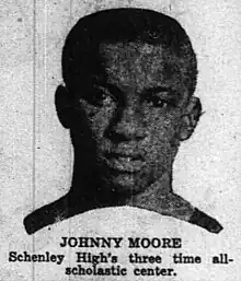 Moore was a multi-sport athlete. In addition to playing in the Negro leagues, he was an all-city basketball player at Schenley High School in Pittsburgh.[7][8] He was also selected three times as an all-scholastic center.[9][10] When he was selected unanimously for the third consecutive year as the best scholastic center in Pittsburgh, The Pittsburgh Courier wrote: