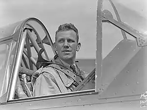 Training commenced at the Elementary Flying Training School at the RAF's station at Desford before going onto Uxbridge as an acting pilot officer. Further flight training followed at No. 9 Flying Training School at Hullavington and he earned his pilot's wings in June 1938.[2] After advanced training was completed, in September 1939 he was posted to No. 41 Squadron, which was based at Catterick[2] and operated Hawker Furys. In January the following year, it began to re-equip with the Supermarine Spitfire.[3]