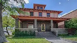 The John Pearce House is a historic house in Albuquerque, New Mexico. It is notable for its architecture and as the only extant house on the Downtown section of Central Avenue, which is otherwise occupied entirely by commercial buildings.[3] The house was built in 1905 by Dr. John F. Pearce (c. 1859–1937), one of the city's first physicians.[4] The contractor, Wallace Hesselden, also built the Henry Mann House the same year.[5] After Pearce moved out of the house in 1933, it was used for various functions including a boarding house and chiropractic clinic.[3] In 1982, the house was renovated and converted to office space. The architect for the renovation was Antoine Predock.[6] The property was added to the New Mexico State Register of Cultural Properties and the National Register of Historic Places in 1980.[2] It is next door to another historic structure, the Skinner Building.