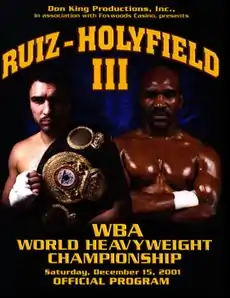 John Ruiz vs. Evander Holyfield III was a professional boxing match contested on December 15, 2001 for the WBA heavyweight championship.[1] The fight ended in a split draw, a result that meant Ruiz retained his WBA title.