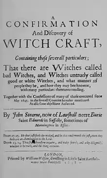 - ↑ Davies, S.F (2007). The Discovery of Witches and Witchcraft: The Writings of the Witchfinders. Puckrel. ISBN 9780955635014.
