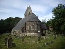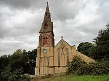 This is a Grade II listed building in Alston, Cumbria.[26] It was built on the site of the previous 1770 church by John Smeaton. However, when levelling the site for the new build, workmen found evidence of a 12th- or 13th-century medieval church which had painted walls. The foundation stone of the new church was laid by Walton-Wilson's wife on 18 August 1869.[27]