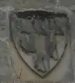 John de Radynden took his name from that of the manor, and his coat of arms with silver (or 'argent') martlets on a blue (or 'azure') field that is the basis for the modern arms of the county of Sussex. [lower-alpha 2][1] There is some evidence to support this. Bodiam Castle, built in the 14th century, has three coats of arms set into the wall of its gatehouse. The central one is that of Edward Dalyngrigge, the builder of Bodiam Castle. His shield is flanked by that of Wardedieu on the left, for his wife Elizabeth, and de Radynden on the right, for his mother Alice (one of the three daughters of John de Radynden).[2]