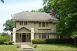 The Johnson House is a historic house at 315 Martin Street in Pine Bluff, Arkansas. It is a two-story wood-frame structure, with a side-gable roof with clipped ends, and overhanging eaves with exposed rafter ends. A gabled porch projects from the left front, supported by brick piers. The entrance is framed by sidelight and transom windows. The house was designed in 1912 by the architectural firm of Charles L. Thompson.[2]