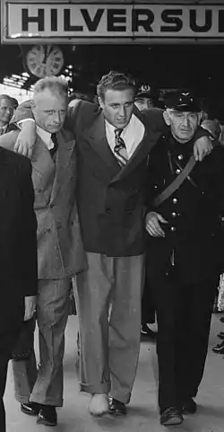 ![]() Rohner with coach Jan Stender (left) at the Hilversum train station in 1948 | ||||||||||||