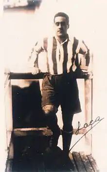 With Athletic playing in the local league, he was summoned to play for the Biscay national team, and was a member of the team that participated in the 1923–24 Prince of Asturias Cup, an inter-regional competition organized by the RFEF.[4] In the quarter-finals against Asturias on 18 November 1923, Laca scored a goal to help his side to a 4–2 win,[5] thus reaching the semi-finals where they were eliminated by Catalonia 0–1 due to a goal from Cristóbal Martí.[6]