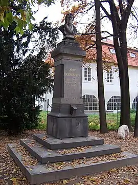 Josef Dobrovský Monument (Czech: Pomník Josefa Dobrovského) is an outdoor monument commemorating Josef Dobrovský, installed at Kampa Park in Malá Strana, Prague, Czech Republic. It consists of a large base and a bust, which was designed by Tomáš Seidan in 1890. The monument was first revealed in Vrchlického sady near Prague main train station.[1] After World War II, it was moved to the Kampa Park, next to Werichova vila, which is a house, where Dobrovský spent his pension.