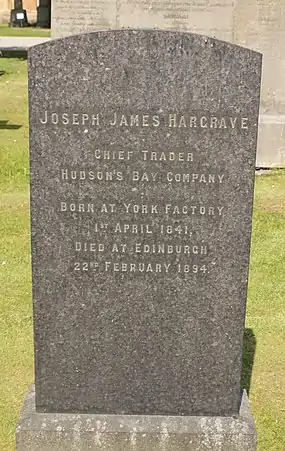 Before his retirement, he became a chief trader in the HBC. He died in 1894, shortly after returning to Edinburgh. He is buried in Dean Cemetery in west Edinburgh. The grave lies in the south-east section.