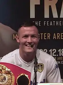 Josh Warrington (born 14 November 1990) is an English professional boxer. He is a two-time world featherweight champion, having held the International Boxing Federation (IBF) title twice between 2018 and 2022. At regional level, he held the British, Commonwealth and European featherweight titles between 2013 and 2017.[2] He made history in 2018 with his win over Lee Selby, making him the first male boxer from Leeds to win a major world title. As of October 2021, he is ranked as the world's fourth-best active featherweight by The Ring,[3] fifth by the Transnational Boxing Rankings Board[4] and seventh by BoxRec.[5]