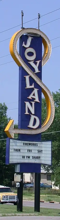 - ↑ Reidl, Matt. "Iconic Joyland sign removed". Wichita Eagle. Retrieved June 15, 2014.