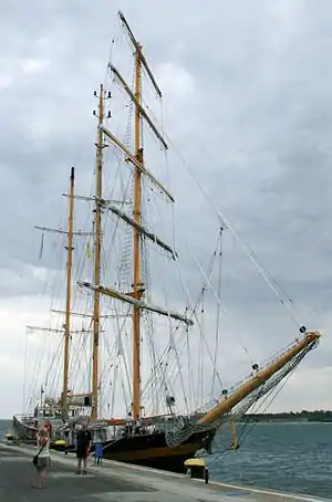 | Sail plan | three-masted barquentine; 16 sails, total sail area of 1,000 m2 (11,000 sq ft) |