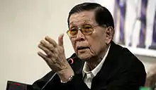 Juan Valentin Furagganan Ponce Enrile Sr., CLH (born Juan Valentin Furagganan;[3] February 14, 1924), also referred to by his initials JPE, is a Filipino politician and lawyer known for his role in the administration of Philippine president Ferdinand Marcos; his role in the failed coup that helped hasten the 1986 People Power Revolution and the ouster of Marcos; and his tenure in the Philippine legislature in the years after the revolution. Enrile has served four terms in the Senate, in a total of twenty-three years, he holds the third longest-tenure in the history of the upper chamber. In 2022, at the age of 98, he returned to government office as the Chief Presidential Legal Counsel in the administration of Bongbong Marcos.