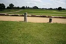 Jublains is mostly known for its "Roman camp", registered as a monument historique in 1840.[2] Even though a simple bourg replaced the Roman city, the remarkably well-preserved ruins make Jublains an exceptional site. The département of Mayenne decided to acquire several parcels of real estate, to allow research on the early residents of the commune.