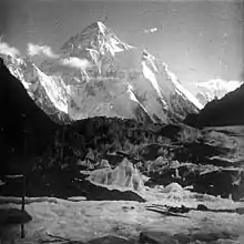 In 1902, Jacot-Guillarmod participated as a doctor in the expedition organised by the Englishman Oscar Eckenstein to try the ascent of the K2 in the Karakoram. The other members are two Englishmen including Aleister Crowley and two Austrians. After landing in Bombay on 21 March 1902, the group crossed India to Askoley, following the maps drawn ten years earlier by William Martin Conway up to Concordia Square on the Baltoro glacier; they were accompanied by a column of 150 porters. From there, the group climbed up to the foot of K2, an area never reached before, but remained stuck for almost two months at base camp at an altitude of 5,700 metres due to bad weather. Jules Jacot-Guillarmod had symptoms of altitude sickness. However, he did not make the connection between altitude and these symptoms. On 10 July 1902 he explored the Northeast ridge of the K2 with one of the Austrians and reached an altitude of 6,700 metres, the highest point of the expedition. The weather conditions deteriorated the following days and one of the climbers suffered from high altitude pulmonary edema. The travellers returned across eastern India, where they stayed for seven months. Jacot-Guillarmod brought home from this expedition nearly a thousand stereoscopic photographs revealing regions little or not at all known at the time.[5][6] Two years later, Jacot-Guillarmod himself organized an expedition, this time to the Nepalese and 8585m high Kangchenjunga near Everest. His expedition consisted of two Swiss men and Aleister Crowley, whom he met during the K2 expedition in 1902. For the organisation of the expedition in Darjeeling, they called upon an Italian hotelier who knew the local language. From Darjeeling, the group advanced on the border between Sikkim and Nepal.[2] After climbing through the Yalung Chu valley, the summit is surrounded by a very steep glacier, now known as The Bottleneck. Three Nepalese carriers and a Swiss participant lose their lives, falling into a crevasse at an altitude of 6,500 metres. The expedition was subsequently abandoned, and the return journey through the Sikkim mountains was made without Crowley, who fled after the avalanche with the remainder of the money Jacot-Guillarmod had provided for the expedition.[2] Jacot-Guillarmod later recovered this money by blackmailing Crowley, threatening to publicly disclose some of his pornographic poetry.