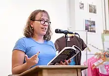 Serano is a slam poet and has given spoken-word performances at universities as well as at events such as the National Queer Arts Festival, San Francisco Pride Dyke March and Trans March stages, Ladyfest, outCRY!, Femme 2006 and in The Vagina Monologues.[21] She was a guitarist and vocalist for the band Bitesize from 1997 through the early 2000s and has also recorded solo music.[22][16]