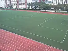 The college has sport facilities such as a stadium holding a synthetic football field and a 400-metre 8-lane track with provision for field events and steeplechase. The stadium has a seating capacity of 1500. Sports and games facilities include four badminton courts in the college hall, table tennis facilities, two tennis courts, four multi-purpose courts for basketball, volleyball and netball, two squash courts as well as a semi-underground rifle range with ten targets. Apart from a gymnasium, there is an outdoor rock climbing wall and Physical Fitness Circuit with 12 stations. To add on, the rooftop of the PD block is equipped with zip-line (or often termed "flying fox") and abseiling facilities.