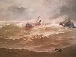 He continued to participate in the National Exhibition and was awarded a First Class prize in 1890 for his depiction of the Battle of Trafalgar. Shortly after, he accepted a position as an inspector for the Compañía Transatlántica Española. As a result, he had to give up his trips to Italy and was unable to paint every day, although he made numerous, small images of the company's ships, in watercolors and pastels.[2]