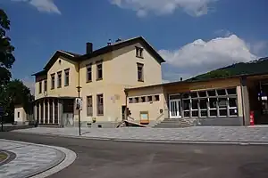 The station is classified by Deutsche Bahn as a category 4 station.[2] The station building belonged to the city from 2004 and was sold at the end of 2012 to a real estate company. In 2019, it was adapted to be used for a bakery.[6] The underpass connects the platform with Königswinter's old town to the west and to the premises of the Maxion company to the east.
