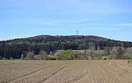 Křemešník is a mountain in the municipality of Nový Rychnov in the Vysočina Region of the Czech Republic. The mountain lies near the town of Pelhřimov and is part of Bohemian-Moravian Highlands. With an elevation of 769 metres (2,523 ft) above sea level, it is the highest mountain of the Křemešník Highlands.