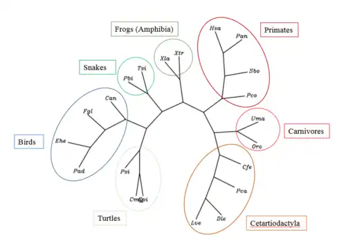 An unrooted phylogenetic tree of RESF1 was created of 20 orthologs and the human RESF1 gene.