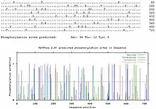 KIAA1958 is composed of 716 amino acids and weighs 79212 Da with an iso-electric point of 6.375.[12] Although not much is known about the KIAA1958 protein, scientific predictions have been made using supercomputers for predictions of KIAA1958's structure and function. KIAA1958 undergoes post-translational modifications. The most interesting modification is phosphorylation. In comparison to other proteins, KIAA1958 has a substantially significant amount of serines phosphorylated during post-translational modification. 36 serines are predicted to be phosphorylated.