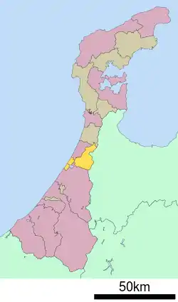 Map showing original extent of Kahoku District in Ishikawa Prefecture:
