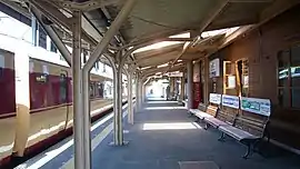 The station consists of two opposed ground-level side platforms connected to the station building by a footbridge. The station is unattended.