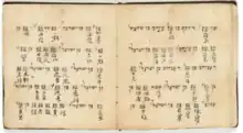 Also at the Klau Library is a haggadah from the 17th century and another from the 18th century, one written in Jewish-Persian hand, the other in Chinese Hebrew square script (like that of the Torah scrolls), using text primarily from an early stage of the Persian Jewish rite.[103] A recent study of the text has a facsimile of one manuscript and a sample of the other, the full text of the Hebrew/Aramaic and Judeo-Persian haggadah (in Hebrew characters), as well as an annotated English translation.[104]
