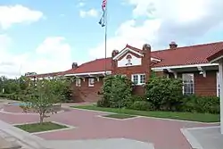 It is a one-story brownish-red brick building with Craftsman influence that was built in 1921.[2][3]