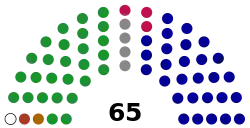 The Kaohsiung City Council (Chinese: 高雄市議會; pinyin: Gāoxióng Shì Yìhuì) is the city council of Kaohsiung City, Republic of China. It is currently composed of 65 councilors, each serving a four-year term, elected using the single non-transferable vote system. The speaker and deputy speaker of the council are elected by fellow councilors through a secret ballot. Kaohsiung residents, aged 23 or above and having resided in the city for more than four months, are eligible to cast their votes or run in the municipal election.[1] Along with the New Taipei City Council, the city council is the largest Taiwanese local council in terms of seats.