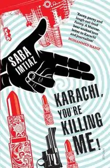 Karachi, You're Killing Me! is a 2014 comedy crime-thriller novel by the Pakistani journalist-writer Saba Imtiaz. The author's debut novel was released in paperback by India's Random House on 1 February 2014.[1] It is written about a 20-year-old reporter, Ayesha Khan, living in one of the world's most beautiful cities, Karachi, about her misadventures and finding a nice lover. The novel received mostly positive feedback from the reviewers. Imtiaz describes the novel as "Bridget Jones's Diary" meets "The Diary of a Social Butterfly."[2] In 2015, the novel was optioned by producer Vikram Malhotra for a Bollywood film adaptation.[2]