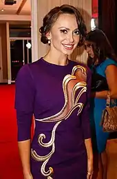 Karina Smirnoff (Russian: Карина Смирнова; born January 2, 1978)[1] is a Soviet-born American[2] professional ballroom dancer of Ukrainian origins.[3] She is known as a professional dancer on Dancing with the Stars, where she won the thirteenth season with army veteran and soap opera star J. R. Martinez. She has also won two runner-up titles, a semifinal title, and several quarterfinal titles.