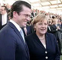 Karl-Theodor Maria Nikolaus Johann Jacob Philipp Franz Joseph Sylvester Buhl-Freiherr von und zu Guttenberg (born 5 December 1971), known professionally as Karl-Theodor zu Guttenberg, is a German businessman and politician of the Christian Social Union (CSU). He served as a member of the Bundestag from 2002 to 2011, as Secretary-General of the CSU from 2008 to 2009, as Federal Minister for Economics and Technology in 2009 and as Federal Minister of Defence from 2009 to 2011.