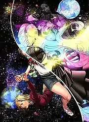 In S.W.O.R.D. #2, Karolina is one of the aliens kidnapped by Henry Gyrich in his "aliens go home" policy.[28] He uses pheromones to target Karolina's Majesdanian physiology and leads her away from the Runaways and kidnaps her without difficulty.[28] She was eventually freed along with the other aliens. She assists in saving the Earth from a fleet of murder-happy aliens. Abigail Brand, now the sole head of S.W.O.R.D., returns all the aliens to Earth, reassuring them they will have their freedom and they are each owed one favor.[29] In Avengers Arena, Karolina and Molly sought out Hank Pym for help when Nico and Chase go missing. Karolina dismissed Molly's concerns that somebody took their friends instead she believed they ran off to be together.[30] Karolina later appears in the pages of Avengers Undercover where she and Molly visit Nico and Chase in the S.H.I.E.L.D. detention center after Hazmat allegedly killed Arcade.[31] Karolina entered a relationship with Julie Power of Power Pack.