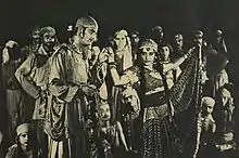 Karwan-E-Hayat is a 1935 Urdu/Hindi costume action-adventure film.[1] The film is directed by Premankur Atorthy, with assistance by Hemchandra, for New Theatres Ltd. Calcutta; and it was produced by Lahore branch of New Theatres. The cast included K. L. Saigal, Rattan Bai, Pahari Sanyal, Rajkumari, Shyama Zutshi, Gul Hamid, Rajkumari, Molina, Shyama Zutshi, Siddiqi, Kapoor and Rana.[2] The cinematographer was Krishna Gopal, with music composed by Mihir Kiran Bhattacharya and his brother Timir Baran Bhattacharya, with lyrics by Hakim Ahmad Shuja Pasha.[3] The film, a costume drama, involved the Prince Pervez on the run from an arranged marriage to a princess, only to fall in love with her when they meet in unusual circumstances.
