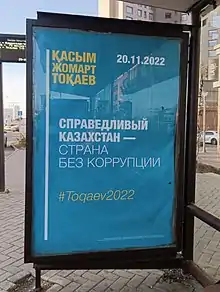 37. "Қасым-Жомарт Тоқаевтың сайлауалды штабы жұмысын бастады". qazaqstan.tv (in Kazakh). 2022-10-22. Retrieved 2022-10-28.