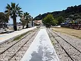 Katakolo railway station (Greek: Σιδηροδρομικός Σταθμός Κατακόλου, romanized: Sidirodromikós stathmós Katakolo) is a railway station that serves the town of Katakolo, Elis in Western Greece, Greece. Located in the centre of Katakolo, close to the harbour and ferry port, the station was opened in 1882 by the Pyrgos-Katakolo Railway Company (SPK), (now part of OSE). Today TrainOSE operates 3 scheduled daily Regional trains[3] to Olympia, via Pyrgos.[4][5] The station is unstaffed[6] however there are waiting rooms available. It was the most western active station on the OSE network.