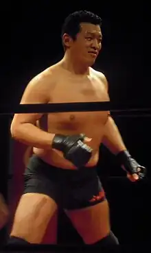Kazunari Murakami (村上 一成, Murakami Kazunari, ring name: 村上 和成) (born November 29, 1973) is a Japanese professional wrestler and retired mixed martial artist currently working for Pro Wrestling Noah. Murakami is best known for his work in New Japan Pro-Wrestling (NJPW) during the late 1990s and early 2000s, where he primarily competed as a member of the villainous Makai Club stable. Aside from pro wrestling, Murakami was also part of the first fight in PRIDE history, defeating John Dixson by submission in 1997.