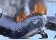 As of 2014, the aircraft sat, broken, crumpled, and burnt in shreds on an ice shelf on the surface.[7][8][9][10]