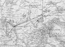 The first B-29 to take off was 45-21871. This crew was to search an area from MacKenzie Bay westward for about 50 miles (80 km) inland. When the flight arrived in its search area, a report was received from Barrow Airways stating that they were in contact with a crashed airplane, and a position report would follow shortly. This position report was received about 10 minutes later, and when plotted, indicated that the missing airplane was down on Daugaard-Jensen's Land, Greenland, at position 80°N, 61°W, roughly 280 mi (450 km) north of Thule, Greenland (Bluie West Six).[5]